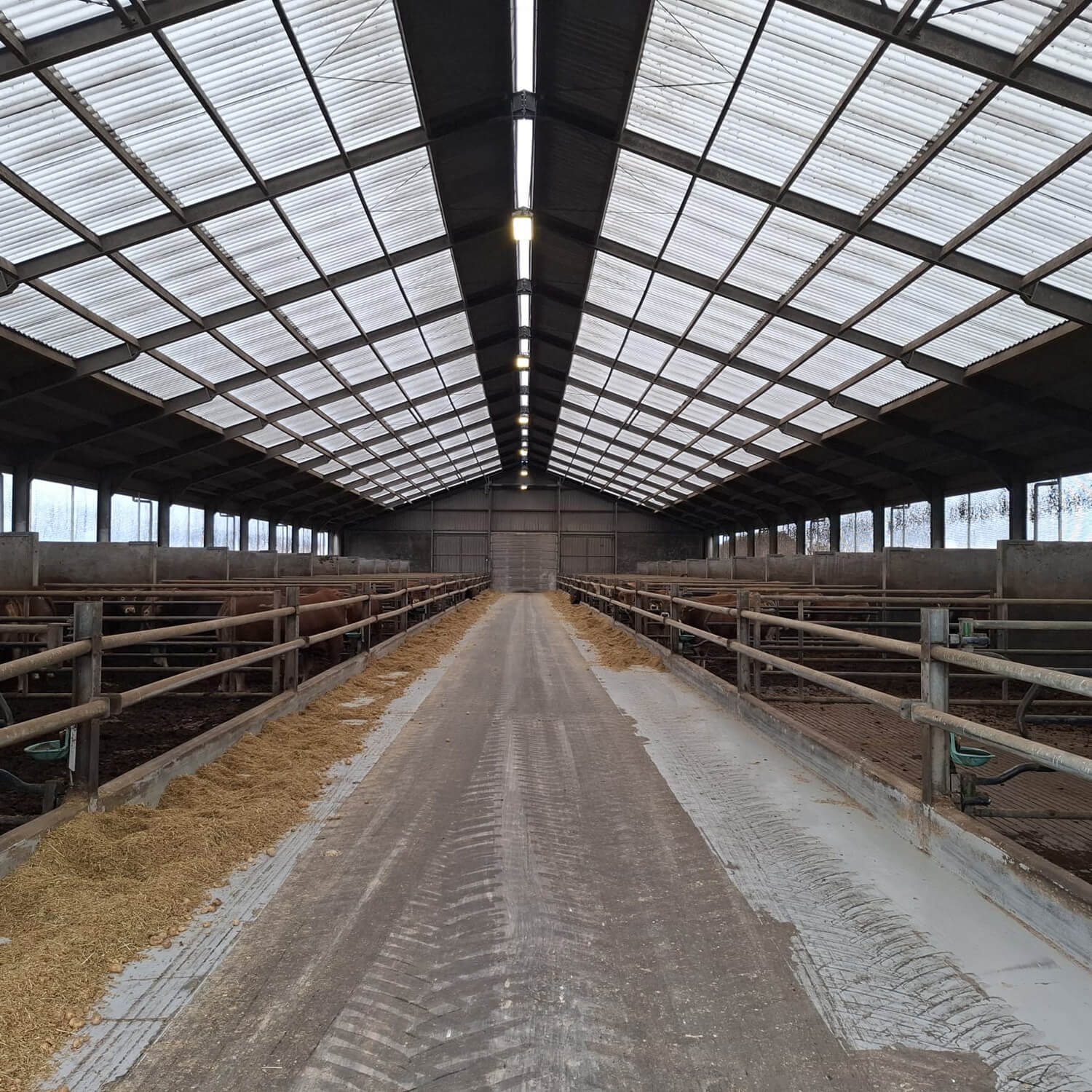 Bij Lightroof Systems combineren we daglichttoetreding met effectieve warmte-wering: meer licht én minder hitte. Dat maakt onze oplossingen ideaal voor stalinrichting, van melkvee- en rundveestallen tot jongveestallen, stallen voor varkens of pluimvee, of moderne geiten- en paardenstallen.